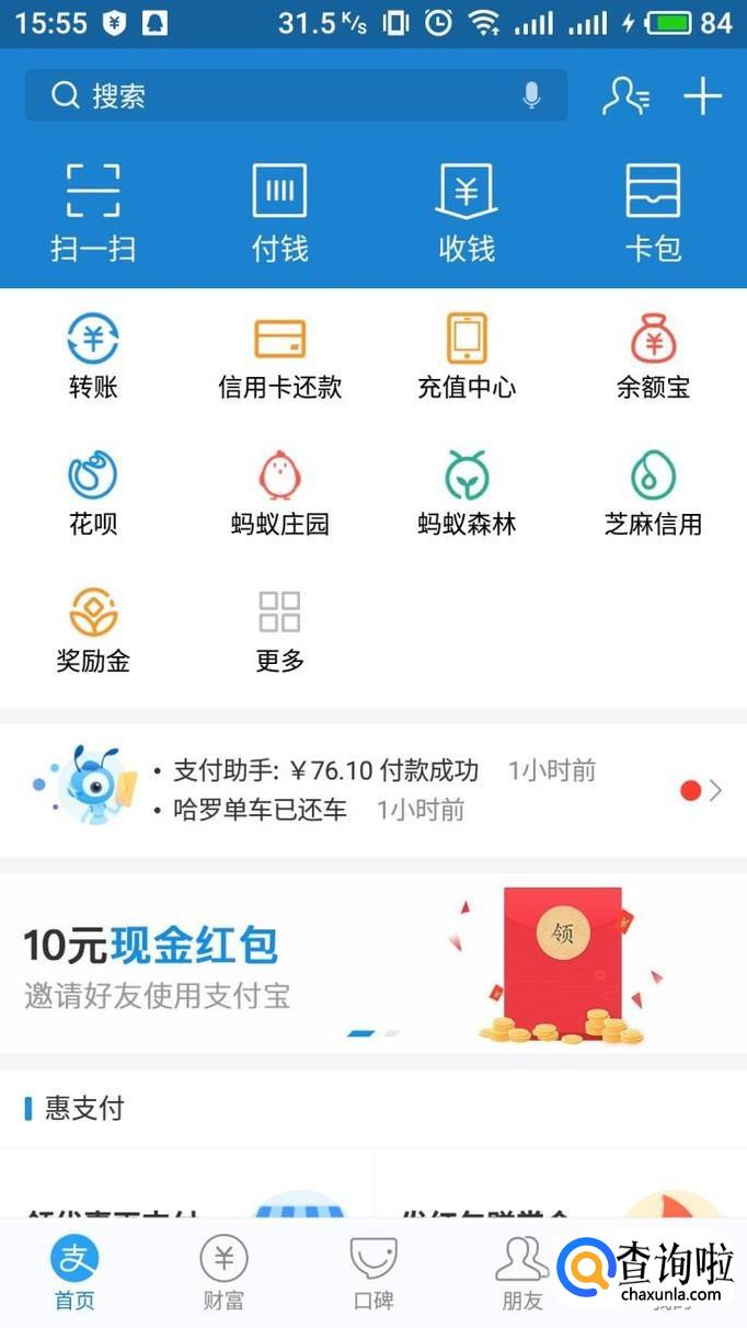 进入支付宝APP主界面,在下方选项中点击“财富”