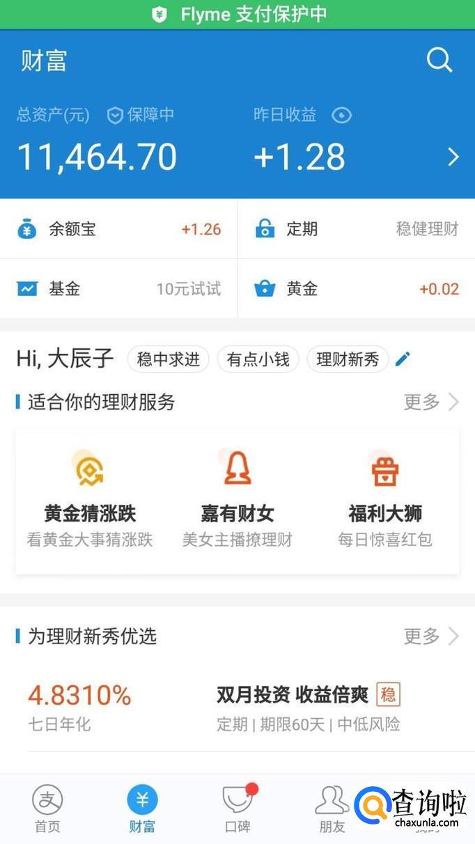 进入财富界面,我们即可看到个人资产以及收益等信息,随意点击一个基金项目。