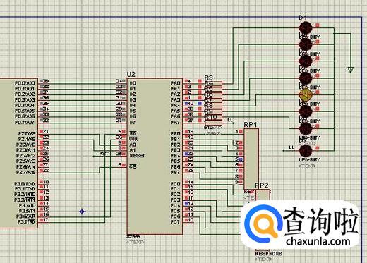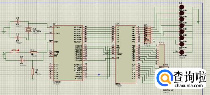 如图所示,我们做流水灯实验所需要的元件,就是红色方框里面的元件,一定都要添加进来,要不然实验就做不成功。