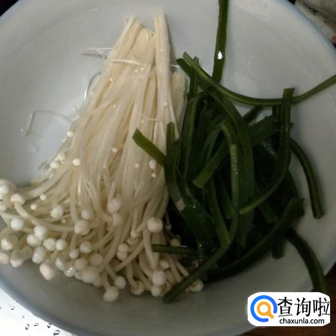 把金针菇、千张、海带等切好,洗干净。