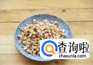 锅中加入少许油,将生花生米倒入锅中抄熟,出锅后碾成花生碎备用,再利用锅热的余温将白芝麻炒熟,少许葱姜蒜切碎备用。