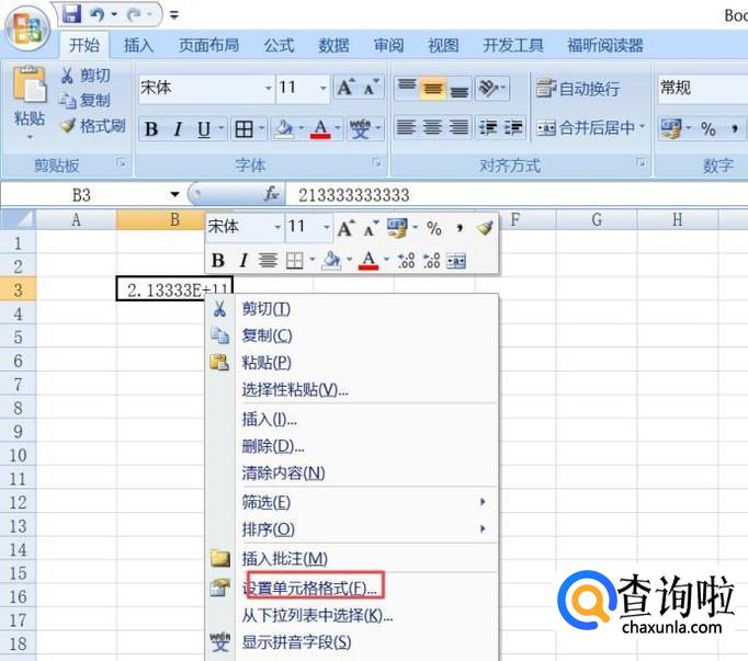 之后我们选中这个单元格,然后右击选择设置单元格格式;