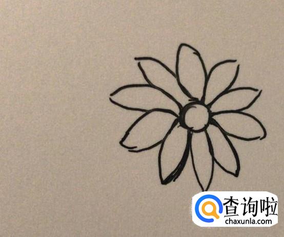 接着画出菊花周围的花瓣,尽量用椭圆形来画,如图所示,这样也是非常好的,而且很简单,可以慢慢进行摸索。