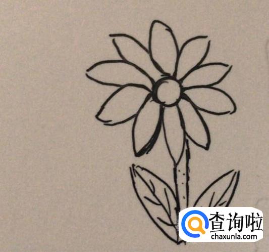 将花瓣都补全来。接着用同样的椭圆形来将花瓣一一给画满来,这样整朵菊花基本就画好了。