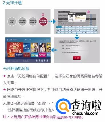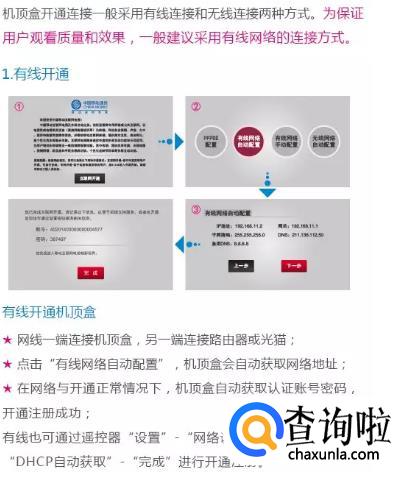 然后开通机顶盒。机顶盒要有两种开通方式,有线和无线。