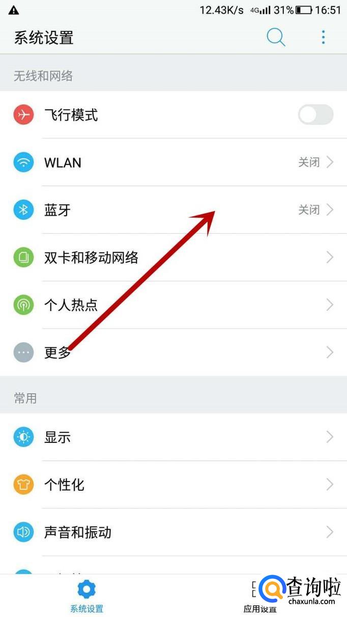 我们再打开安卓手机的设置,找到 蓝牙,点击一下;