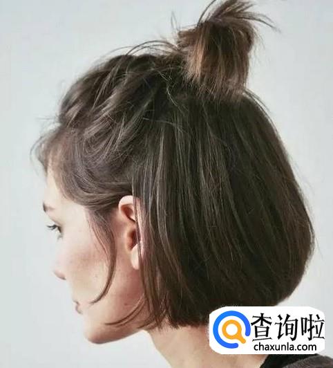 把短发向后拢一拢,然后用一个橡皮筋把能扎的部分扎起来,这样的短发既随性又可爱,也适合比较懒得搭理头发的女生。