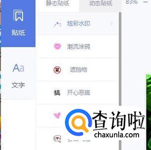 然后点击屏幕上方的贴纸文字,如下图所示。