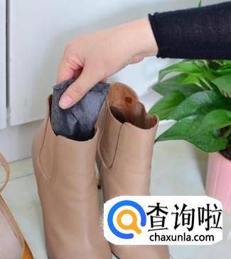 往鞋子里塞入活性炭包,活性炭包会把鞋子的臭味吸走,快的话半天就没臭味了。