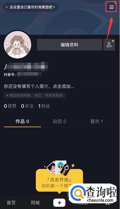进入我的页面后,在右上角可以看到一个三横符号,点击一下。