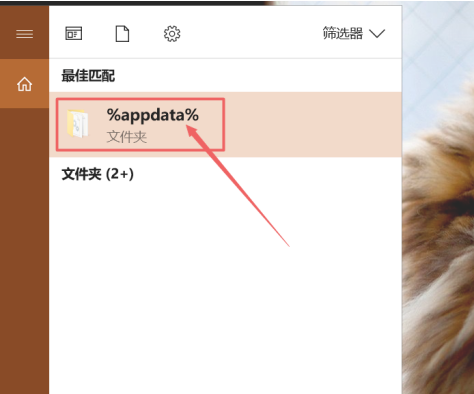 3、点击主界面左下角的放大镜搜索图标,输入框内输入%appdata%,点击上方最佳匹配的文件夹。