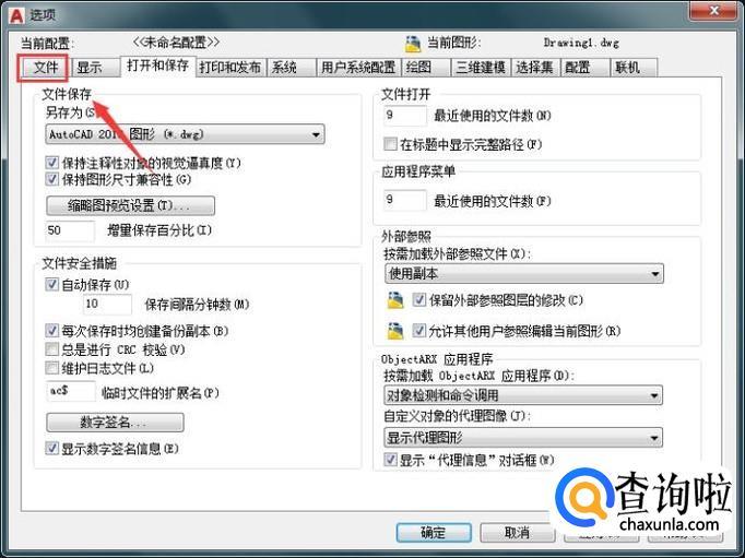 点击选项在弹出的对话框内找到文件选项,如图所示: