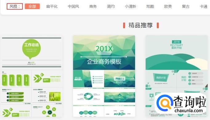 有各种风格模版。除了场景模版以外还有很多风格模版,有:扁平化、中国风、商务、简约、小清新、炫酷、欧美、复古、卡通等风格。