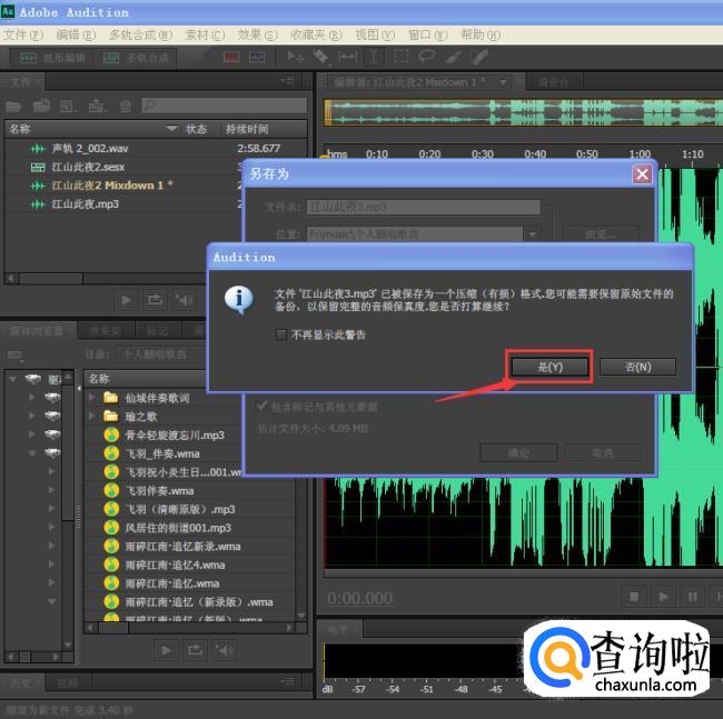 当软件提示你是否需要保存为无损格式或者是否需要备份时,一律点击确定。