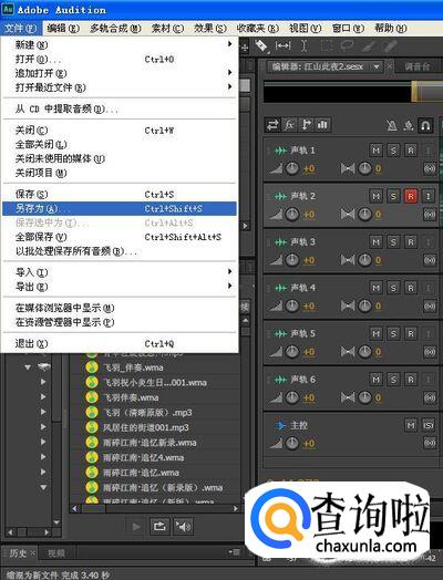 然后我们就可以对刚才混缩过的新文件,进行保存处理,点击”文件-另存为”,如下图所示。