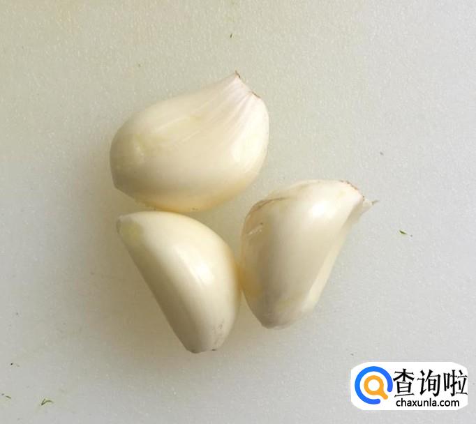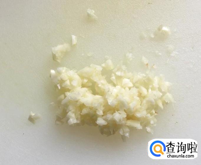 大蒜三瓣剥去外皮清洗干净,先用刀拍碎再成蒜末