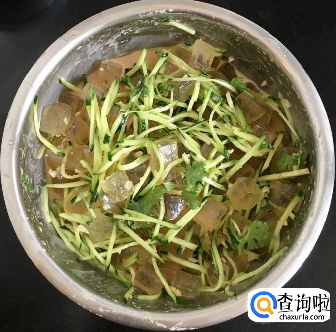 黄瓜,凉粉,蒜,芝麻酱,味极鲜酱油,盐,白醋,香菜等等