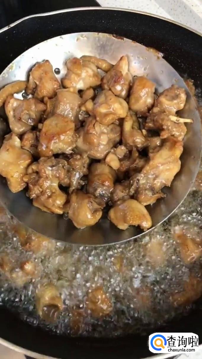 然后把炸好鸡肉捞出沥干,如下图所示。