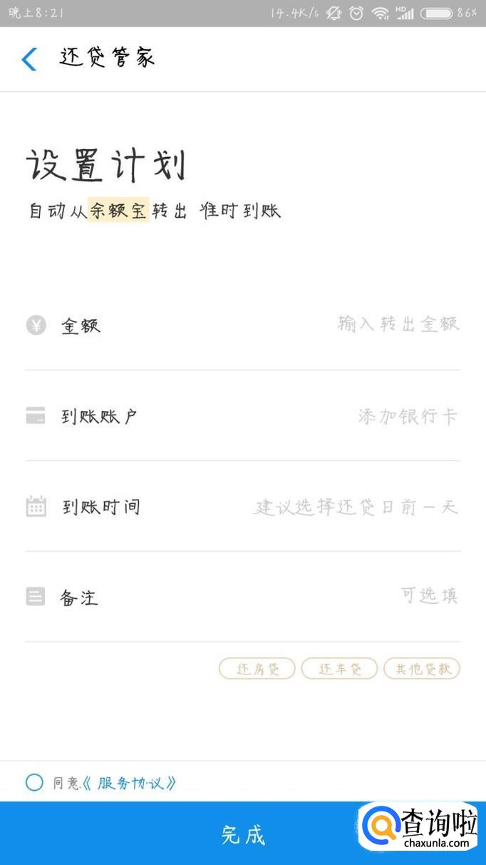 输入还贷信息,同意相关协议后,支付宝就会按计划自动的帮着还贷了