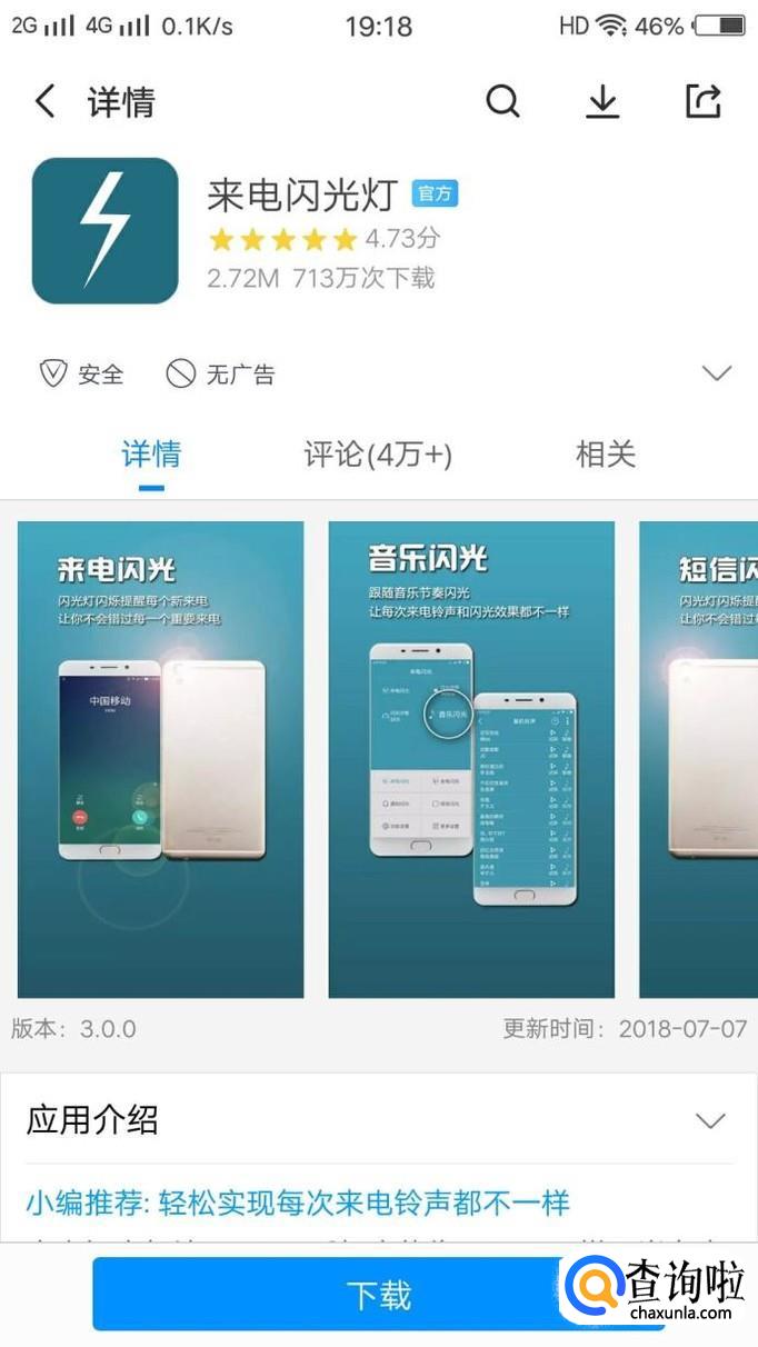 打开vivo手机应用商店,搜索“来电闪光灯”将其安装到手机上面,如图所示。