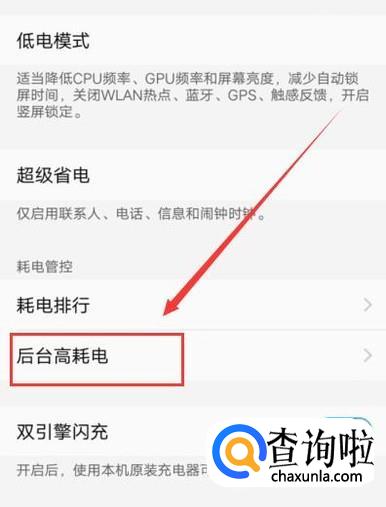 进入之后,点击“后台高耗电”,然后将“来电闪光灯”打开,如图所示。