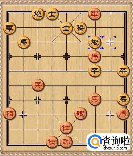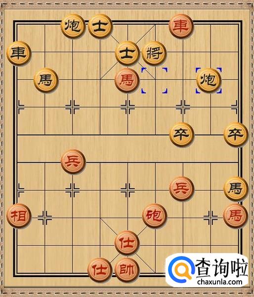 红方炮五平四,红方炮移动到黑方老将的当头,利用黑方炮作炮架,红炮将军。如图所示。