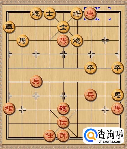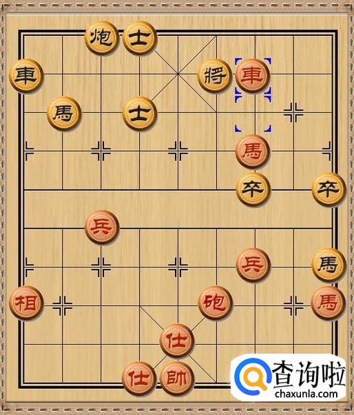 红方并没有选择用红车来抽将黑方的人马,红方车三进一,红方车前进一步在右面将军。如图所示。