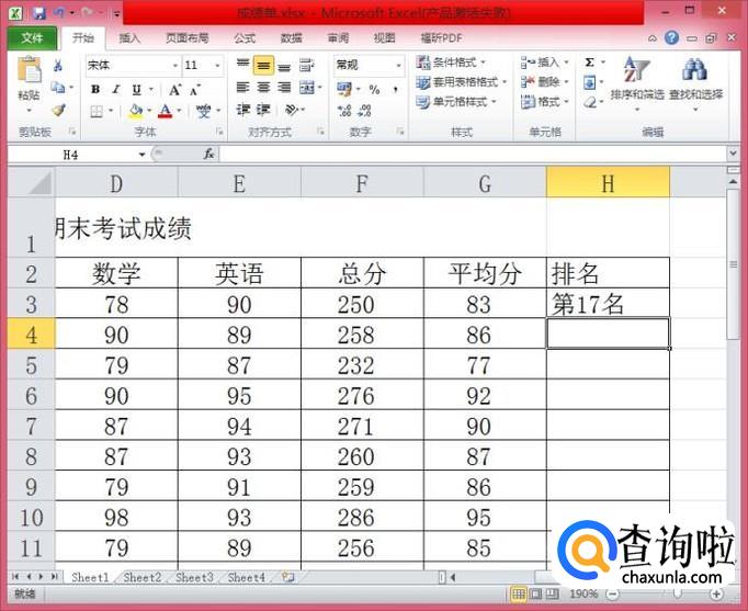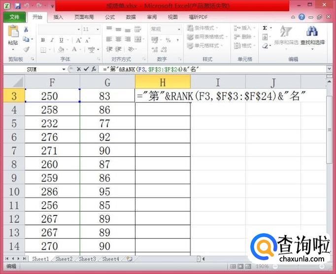 注意:F3是我们总分列的第一个数据,排名的范围在F3:F24,“第几名”其实就是在我们一般的排名函数前后各加了一个字。