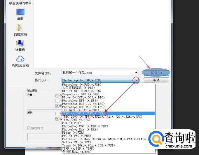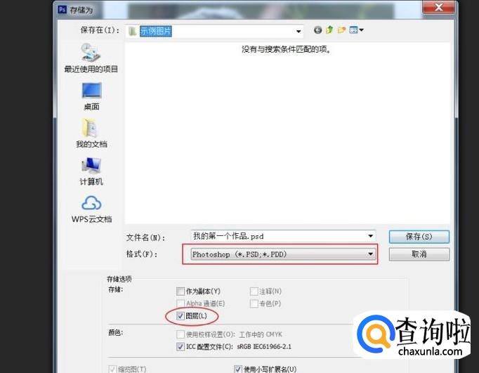 注:默认格式为:PSD,它可以存储图层以及通道信息。