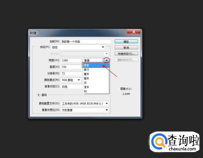 当然如果我们只用于网络传播或者视频制作时,显然单位设为:毫米或厘米,是不合适的,因此我们这里需要将毫米更改为:像素单位。