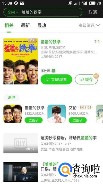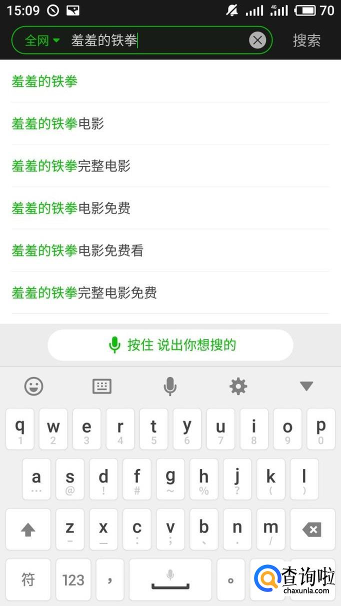 进入搜索界面以后,在搜索界面当中输入羞羞的铁拳。然后就可以找到该电影。