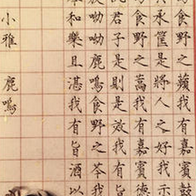 小雅:《诗经》中“雅”部分,分为大雅、小雅,合称“二雅”。雅,雅乐,即正调,指当时西周都城镐京地区的诗歌乐调。小雅部分今存七十四篇。从内容上看正大平直,从风格上说中和典雅,既丰腴又婉曲,一派祥和气象,特别是开篇以鹿鸣起兴,清新质朴。