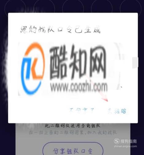 创建成功过后,会出来一个战队口令,复制该口令,然后分享给要和自己组队的朋友
