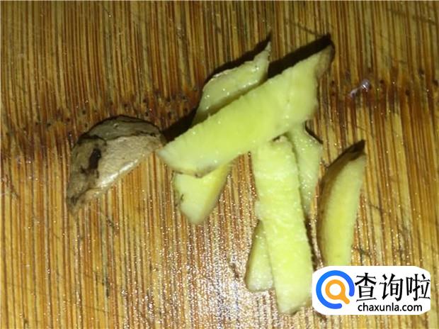 老姜清洗干净泥沙,切成姜片。