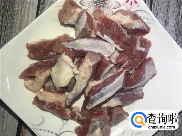 牛腩清洗干净,按着牛腩的纹路,切成薄片,加入少许料酒,腌制一会。