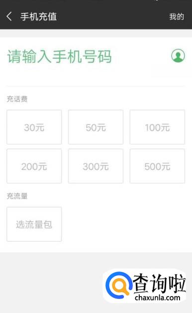进入之后,输入上手机号码,选择话费的金额,如图所示。