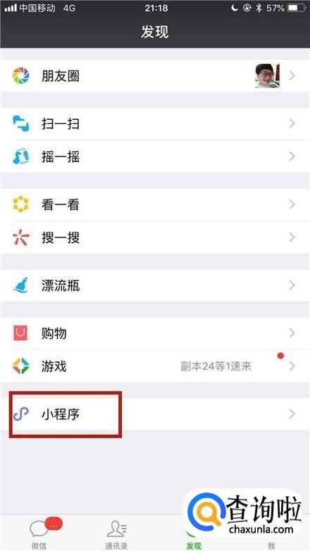 首先点击微信中的小程序,如下图所示。