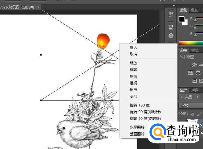 如图,现在这张就是我们要扣的图了,而我们要扣的图像就是中间那个黄色的灯笼了。