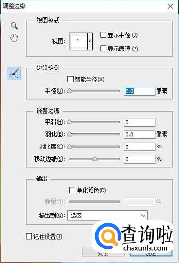 调整边缘。按住键盘上的"alt"键,同时滚动鼠标滑轮可以调整图片的大小,调整大小直到可以看到像素大小的程度,然后对边缘进行修整,同时使用点击右键出现的"调整边缘"进行调整,如右图是改好后的图片选区。
