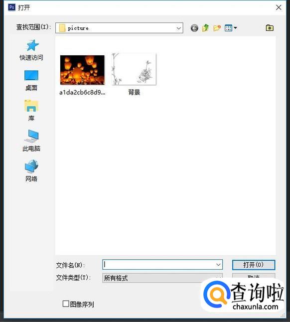 加入选区到背景图片。点击文件——打开,选择打开我们所需要的背景图片,注意这时候不要解锁图层。打开文件,把背景拖动到PS软件上面。