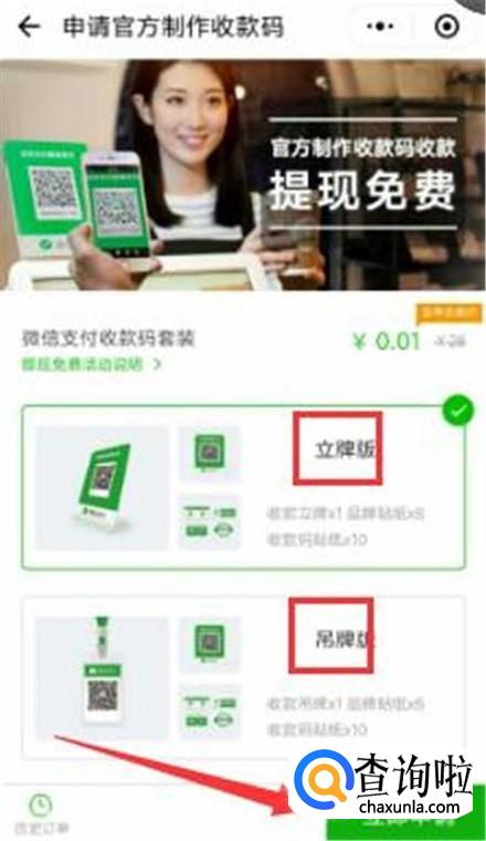 最后选择你要的收款码类型,并点击立即申请就可以了。