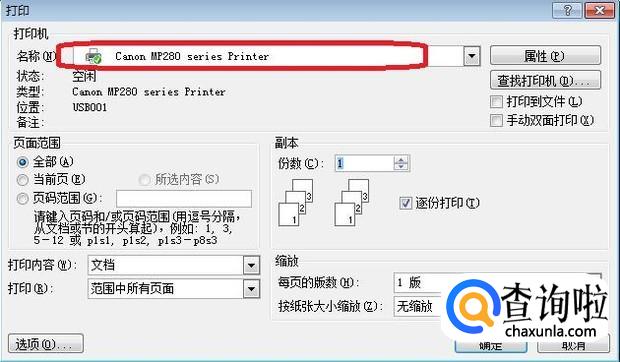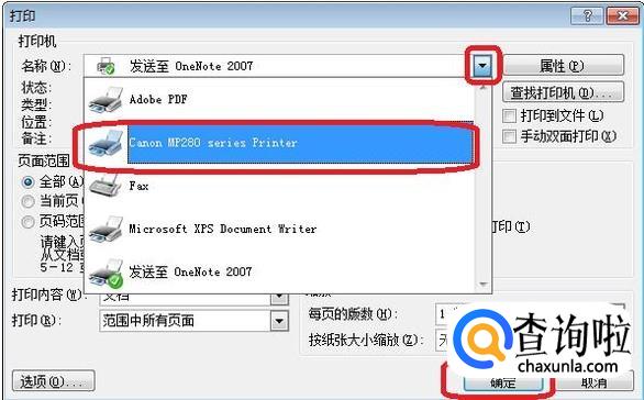 我们只要点击图中下拉菜单,选中正确的打印机,点击确定,就可以正常打印了。