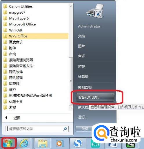 但是如果每次打印的时候,都需要这样设置的话,就很麻烦,我们需要把打印机设置一下。点击“开始”菜单,点击“设备和打印机”。