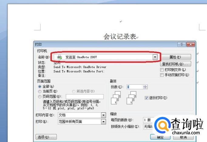 首先我们需要明白这是什么原因引起的,一般重新安装OFFICE或更新版本的时候就容易出现这种问题。我们回到打印页,看到引起这种情况的原因是打印机名称变成了“发送至 One Note 2007”。