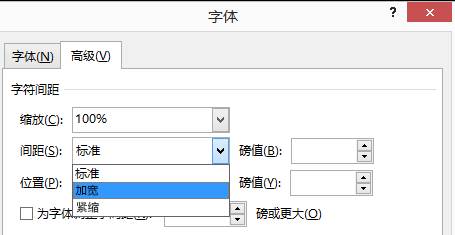3、在"间距"框中,单击"加宽"或"紧缩",然后在"磅值"框中指定所需的间距大小。