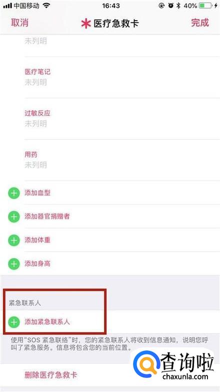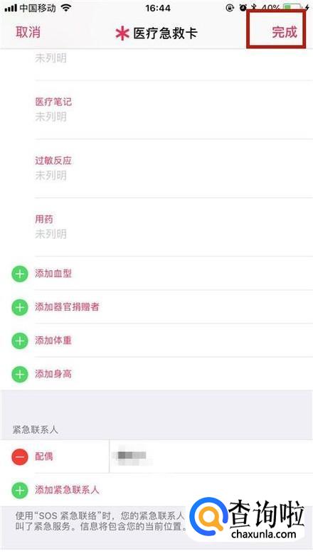 苹果手机如何创建锁屏情况下医疗急救紧急联系人