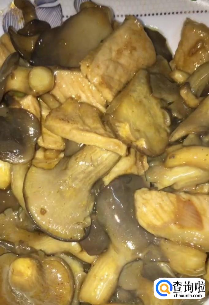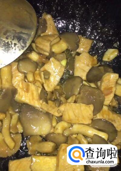 最后倒入水淀粉勾芡,出锅装盘即可!美味的平菇肉片就制作完成啦!