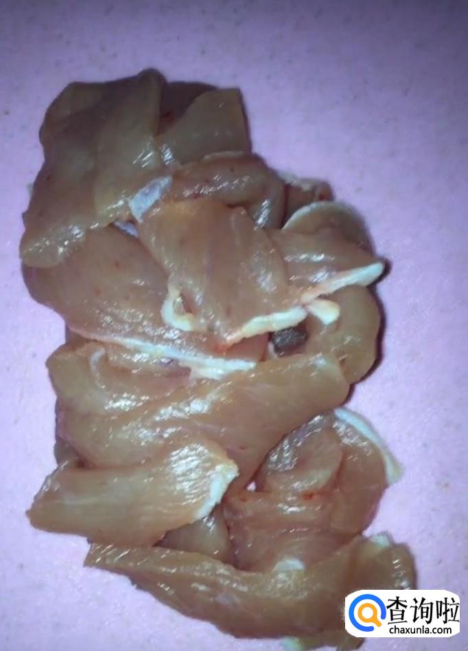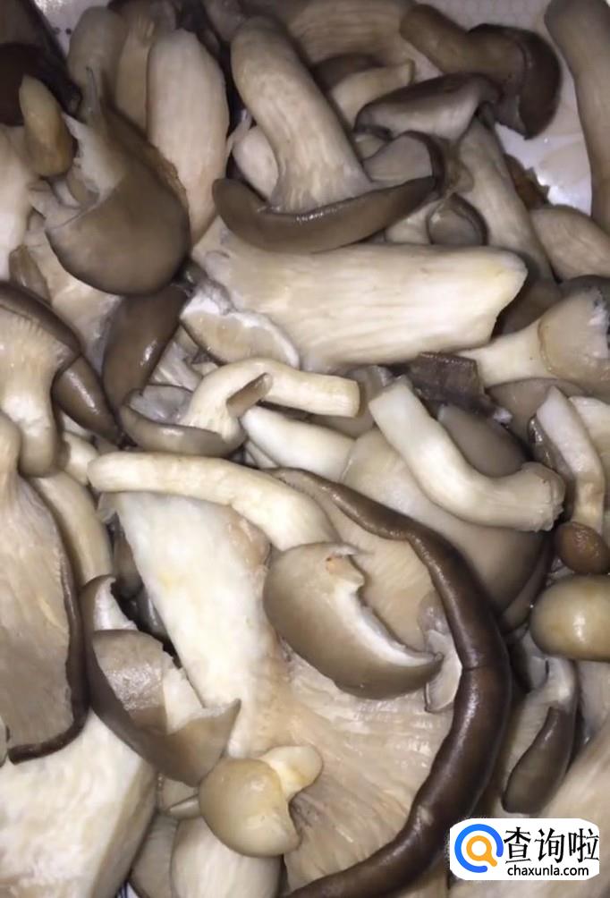 首先我们将平菇清洗干净,撕成小块备用,肉切片备用