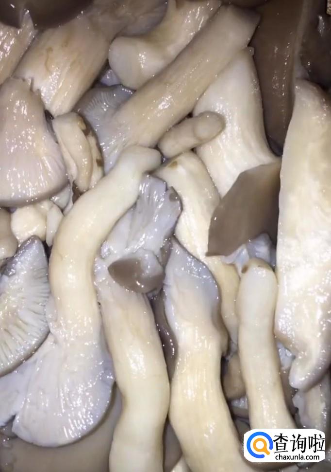 然后我们将平菇放入热水锅中,焯两分钟捞出,在凉水中冲凉,控干水分备用