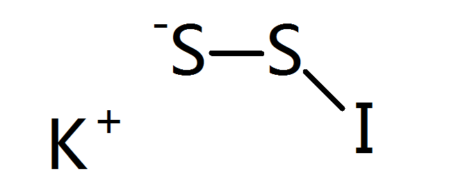 二硫碘化钾(KIS2)其化学名称实为二硫代亚碘酸钾。按化学中可以认为二硫碘化钾是可以生产出来的。化工产业中有 亚氯酸钠(NaClO2),按同族元素性质可知,二硫碘化钾理论上是可以生成出来的,但是每一种化学物质的存在都有它的作用。二硫碘化钾已被生产研制出来,现多用于节契的圣诞树。原则上,碘的 非金属性比硫强,但KIS2中,碘显现金属性质,为+3价,硫显-2价。